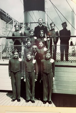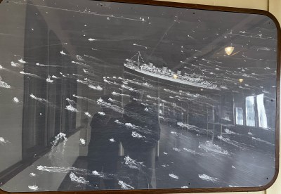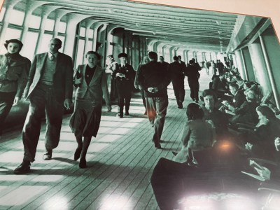 We were there on that day to see it arrive. Jerry’s farther had been on it coming back from the war, we think it was 1944, so we all went to see it come in.Terrible glare on this one, couldn’t avoid it.