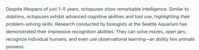 Because they have no bones they can fit in tight places even a crevice the width of a quarter. They can change colors and textures and can spray the enemy with a cloudy substance to get away quickly. Very interesting creatures.