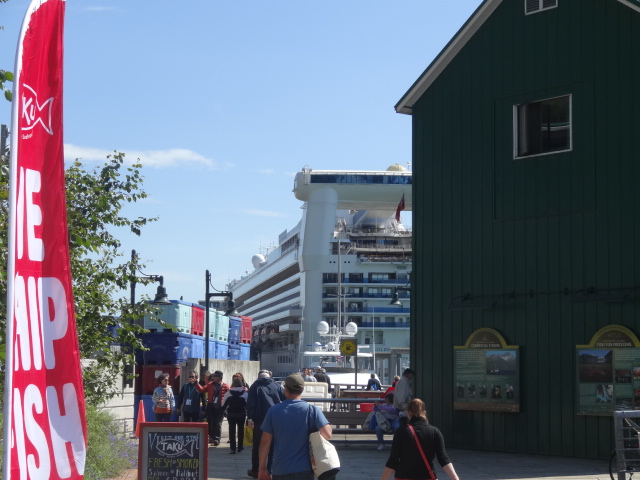 we went downtown to buy some smoked salmon. the streets are very narrow here too. we were lucky to even find a parking spot in front the smokehouse. good driving jerry. it was right by the cruise terminal where 6 ships were docked. I couldn’t get them all. this is probably where you guys came in frank and linda?