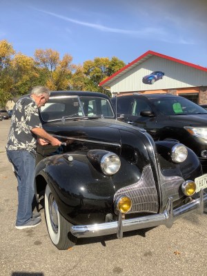 we passed this car lot and jerry just had to stop. he bought one with five of his friends when he was 15 for $55.00. they all put in $11.00 and one parent helped them get it, but they didnt keep it long.