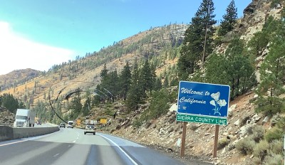 the next morning we got on highway 80 going through truckee in the sierras. we hit our first rain. and even saw snow on the ground.