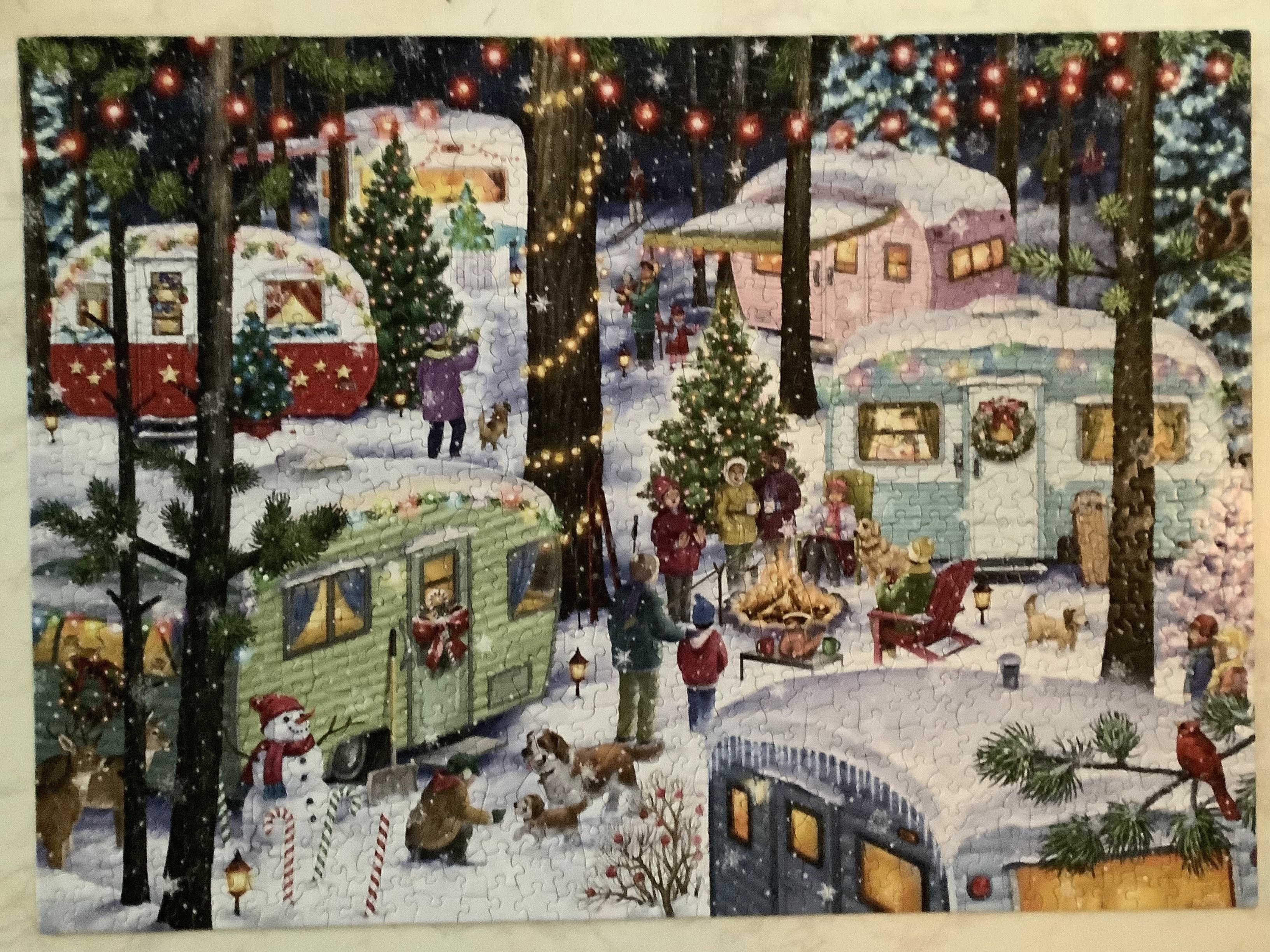 the next puzzle depicts what appeals to me now. it looks like so much fun. of course i would want the family and friends in all those other trailers. notice the green one has two cats in the window. i’m torn between that one and the pink one being ours.