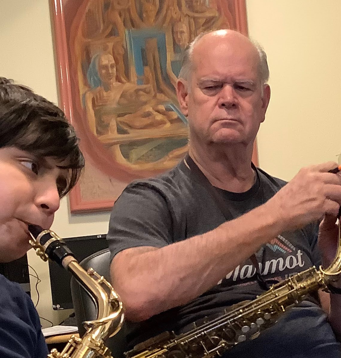 HAVE YOU BEEN PRACTICING? “practice, practice, practice”MIKE PLAYING STAN GETZ ~ OR WAS IT STAN KENTON? while his student listens HE PLAYS IT BACK AFTER A FEW TRIES WITH NO WTITTEN MUSIC NOTES🎵 “GOOD EAR, GOOD JOB”~ MIKE SAYS.