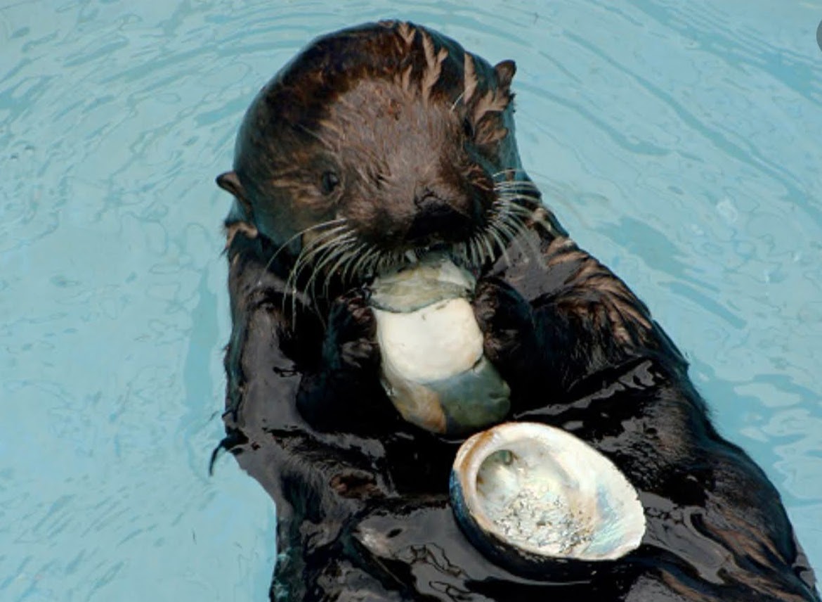 as you probably noticed, you can’t talk about abalone shells without mentioning sea otters. we’ve seen many in Monterey bay pounding the shell on a rock – they’ve put on their chest – to open it. abalone is a staple in their diet, and they keep the sea urchin population in check, which improves the kelp forest and gives abalone more to eat.