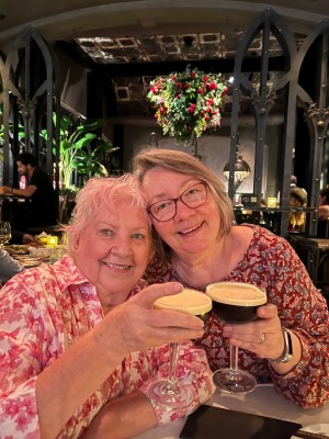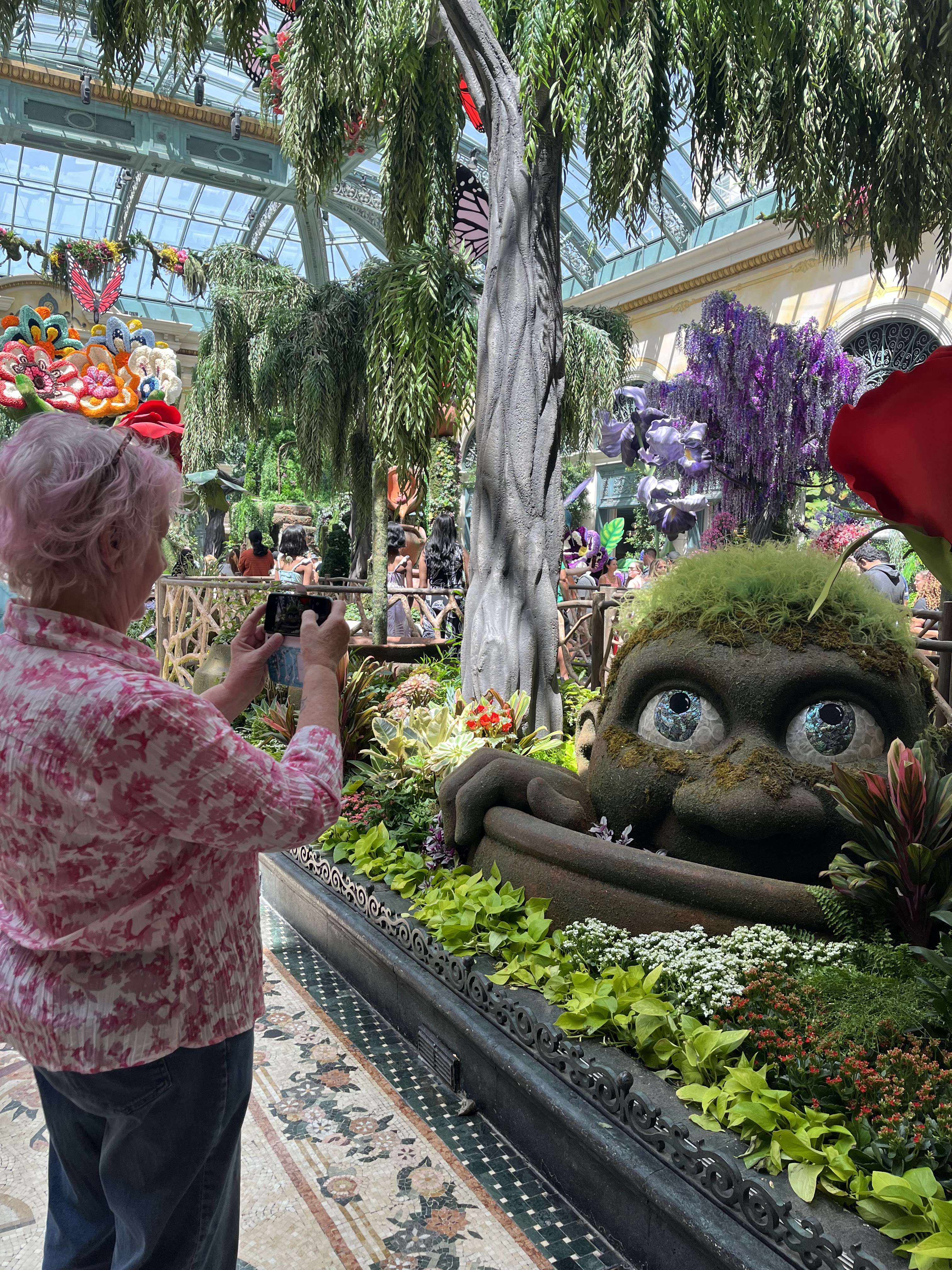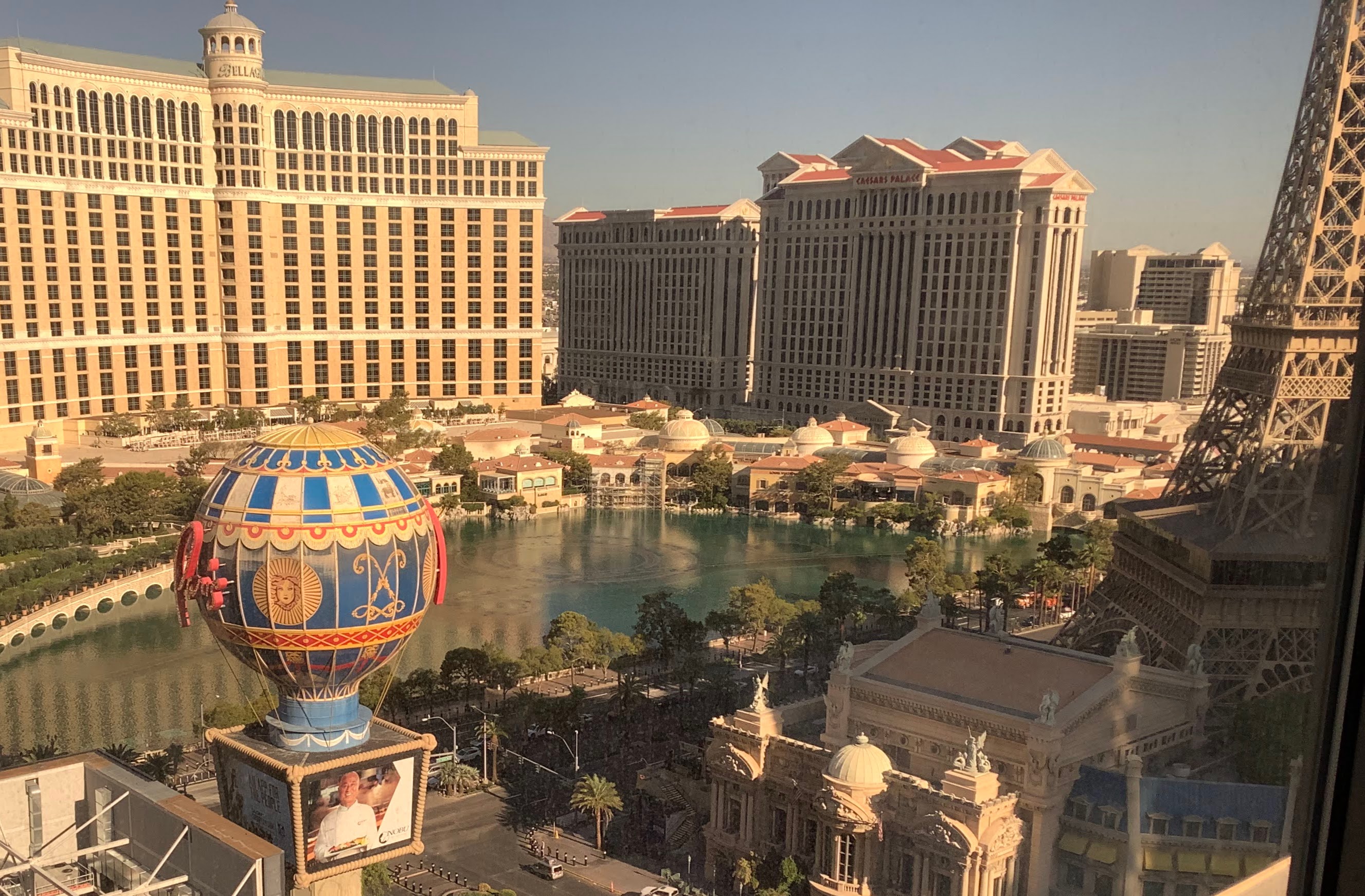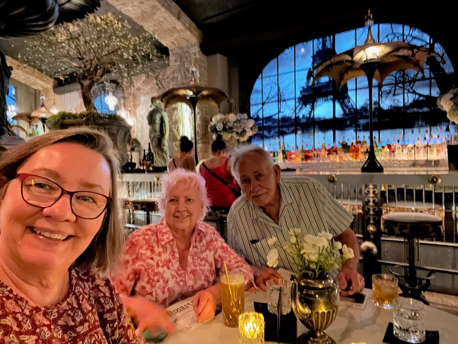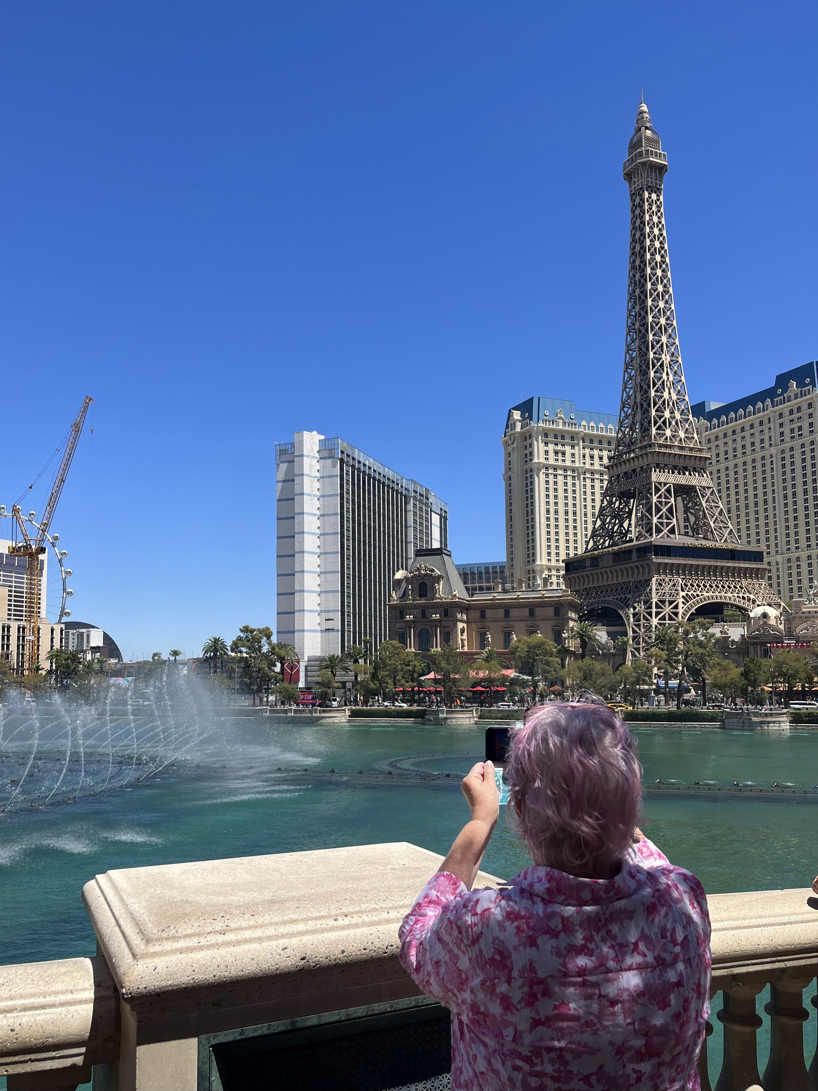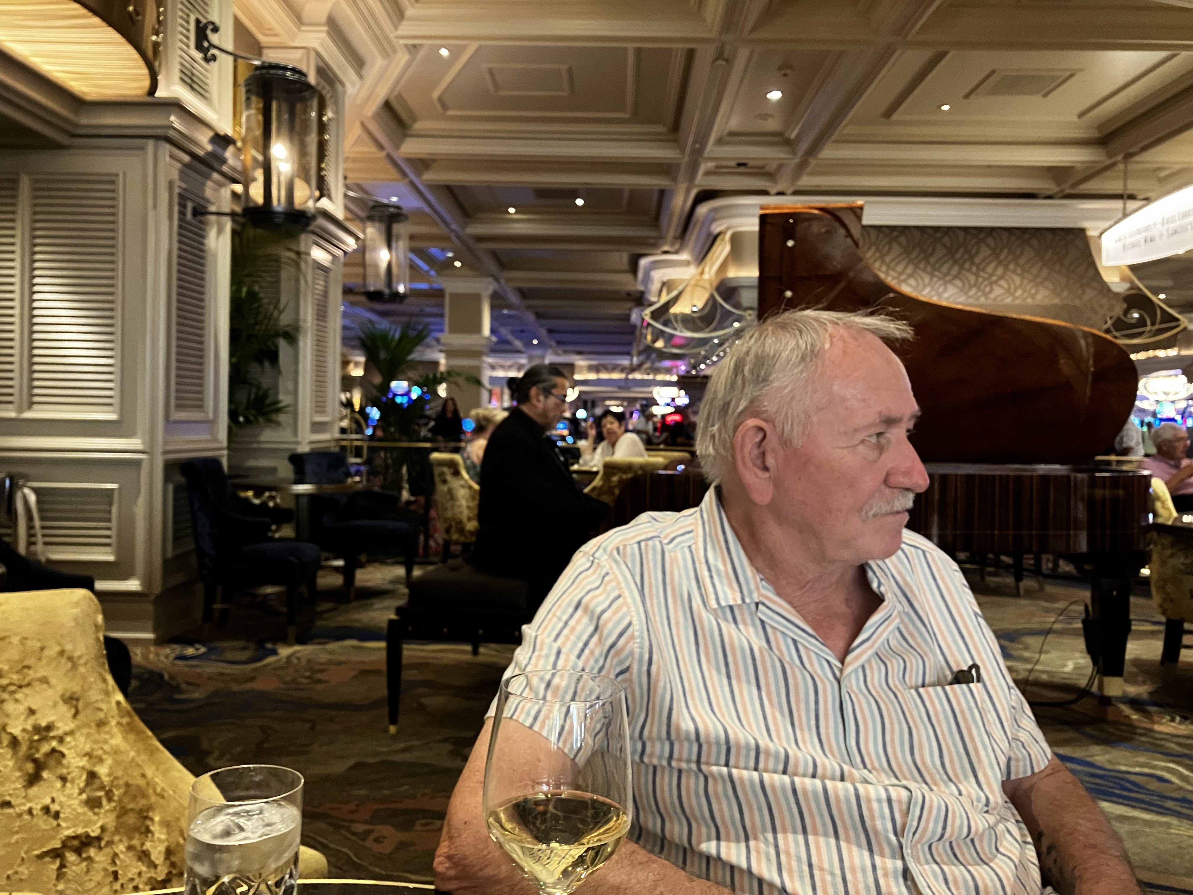 Walking back we decided to have a nightcap at the Mon ami Gabi patio bar, we didn’t eat there this trip because they no longer have the fish I like. We mentioned our celebration and the bartender gave us complimentary champagne. Tracy had to get up early so just sipped hers. I got a refill and probably drank Jerry’s.