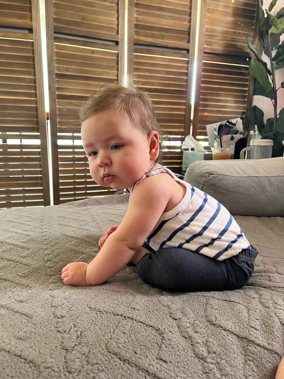 I’ll bet she is a little firecracker She’s been really trying to sit up but then it’s like “what do I do now”? Oh, now I know how, “will somebody get me my purse”