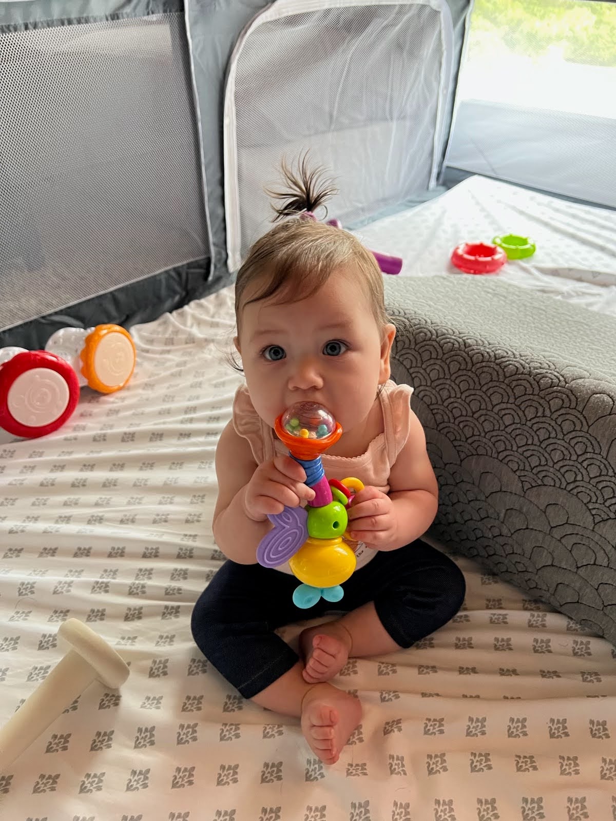 This is the first toy I gave her, and Hannah says she still loves it. touch, feel, and then in the mouth. Lots of things to discover now