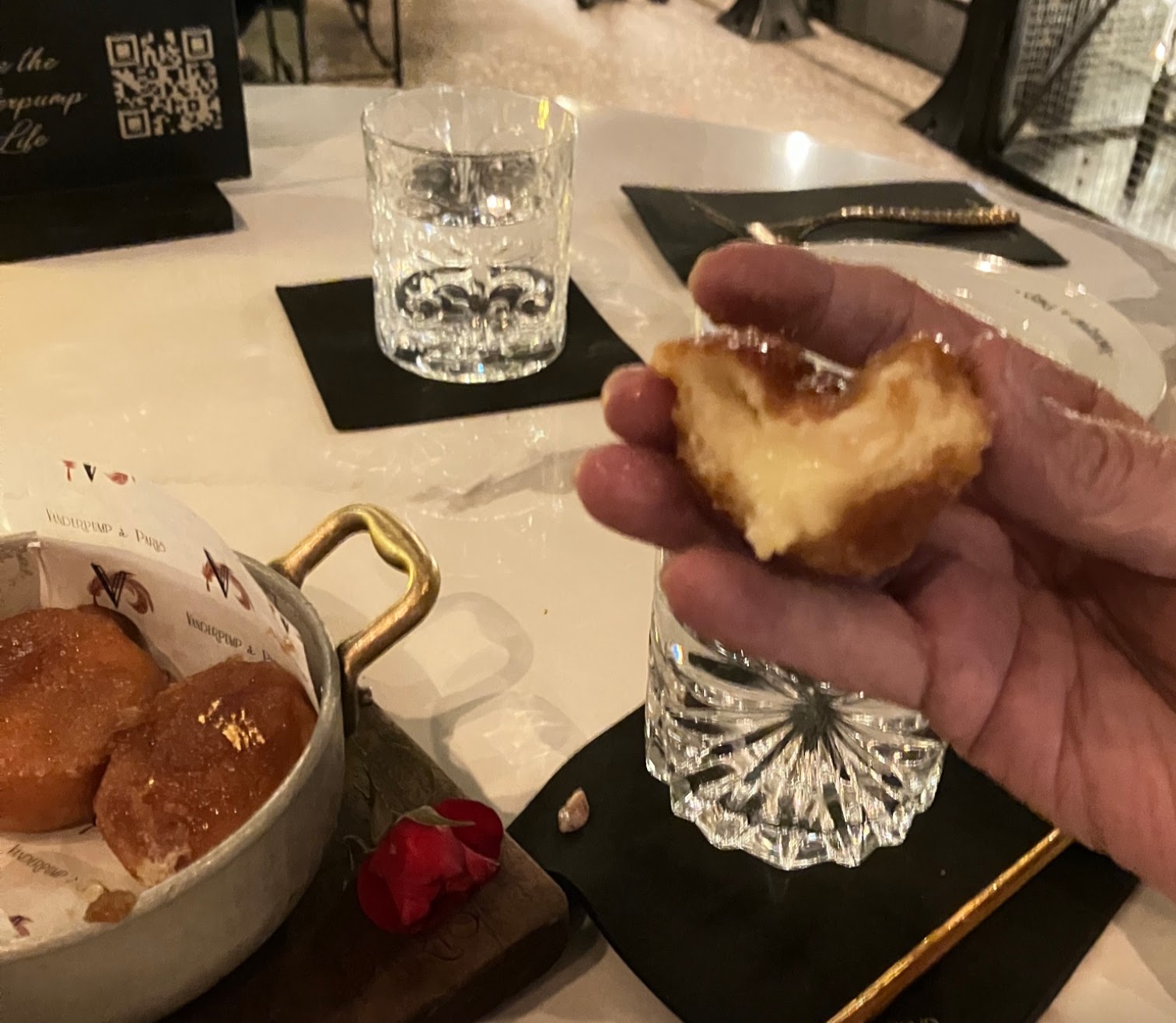 I liked this picture I took of Tony taking a picture while Amy was taking a picture. We had just see the movie ‘Strays’. It was horrible and disgusting.This was a really fun puzzle to put together.I didn’t include this picture on the Vegas posts, but I couldn’t resist to share this irresistible desert we had at the Vanderpump restaurant in this ‘just for fun post’. Notice the the edible gold leaf on top?It’s beignets of New Orleans fame filled with crème brûlée. OMG