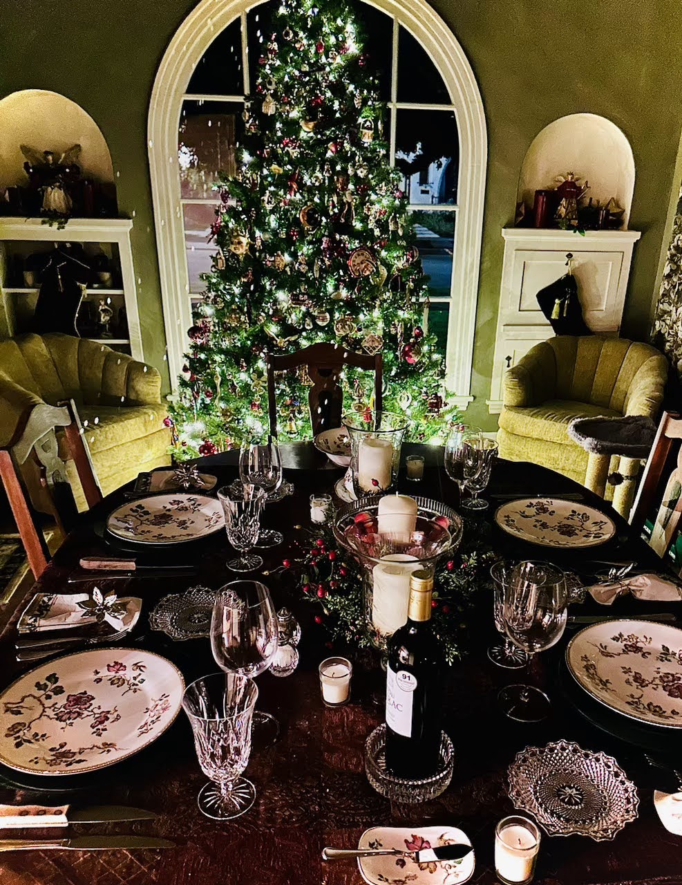 We had a good start on New Year’s Eve at Frank and Linda’s. Their house is always so beautifully decorated at Christmas. The table was set so inviting, but we first toasted with champagne and shrimp cocktails 🥂🥂
