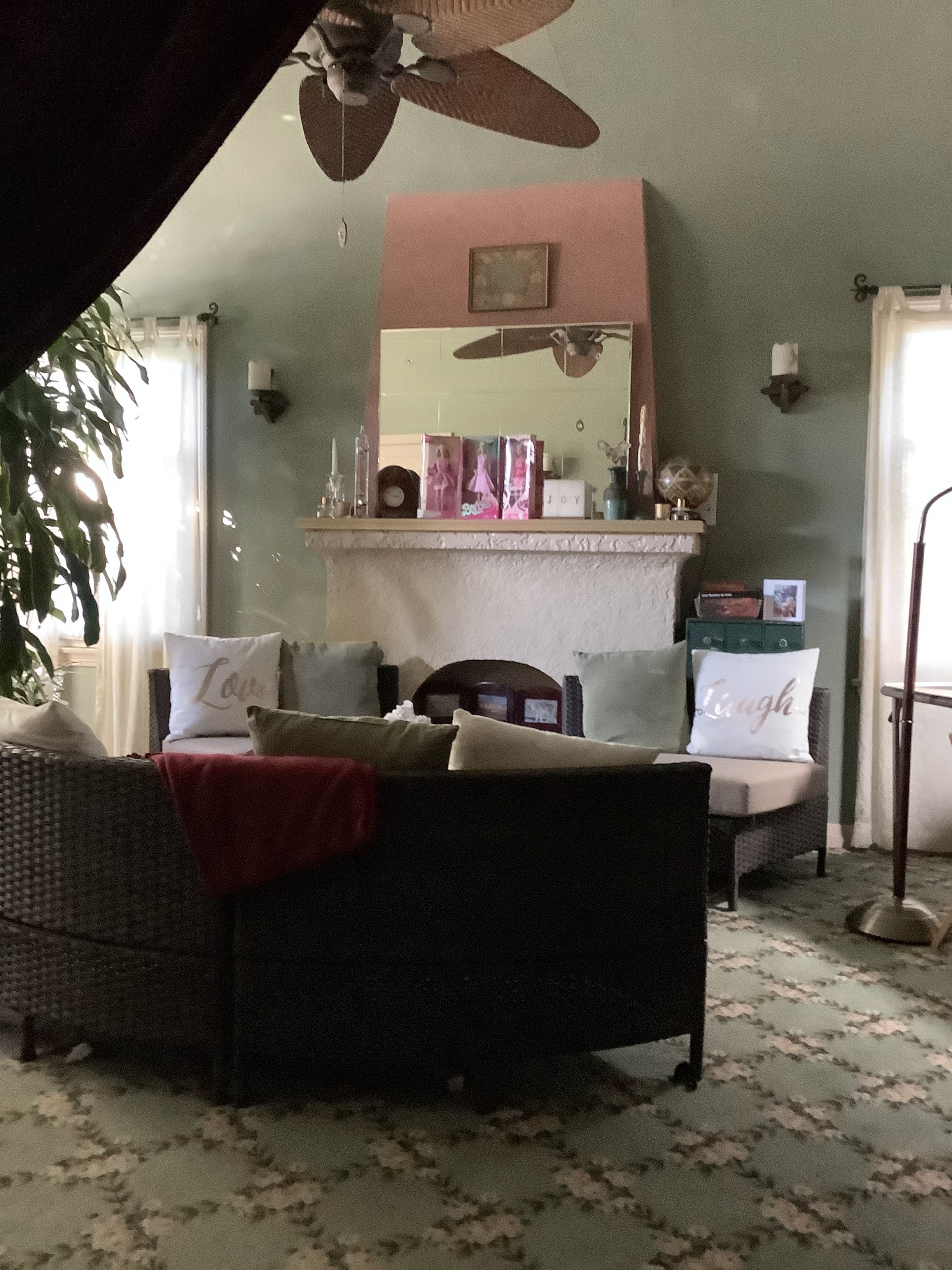 I found a place for my new Barbie. I put a couple of her friends on the mantle with her.