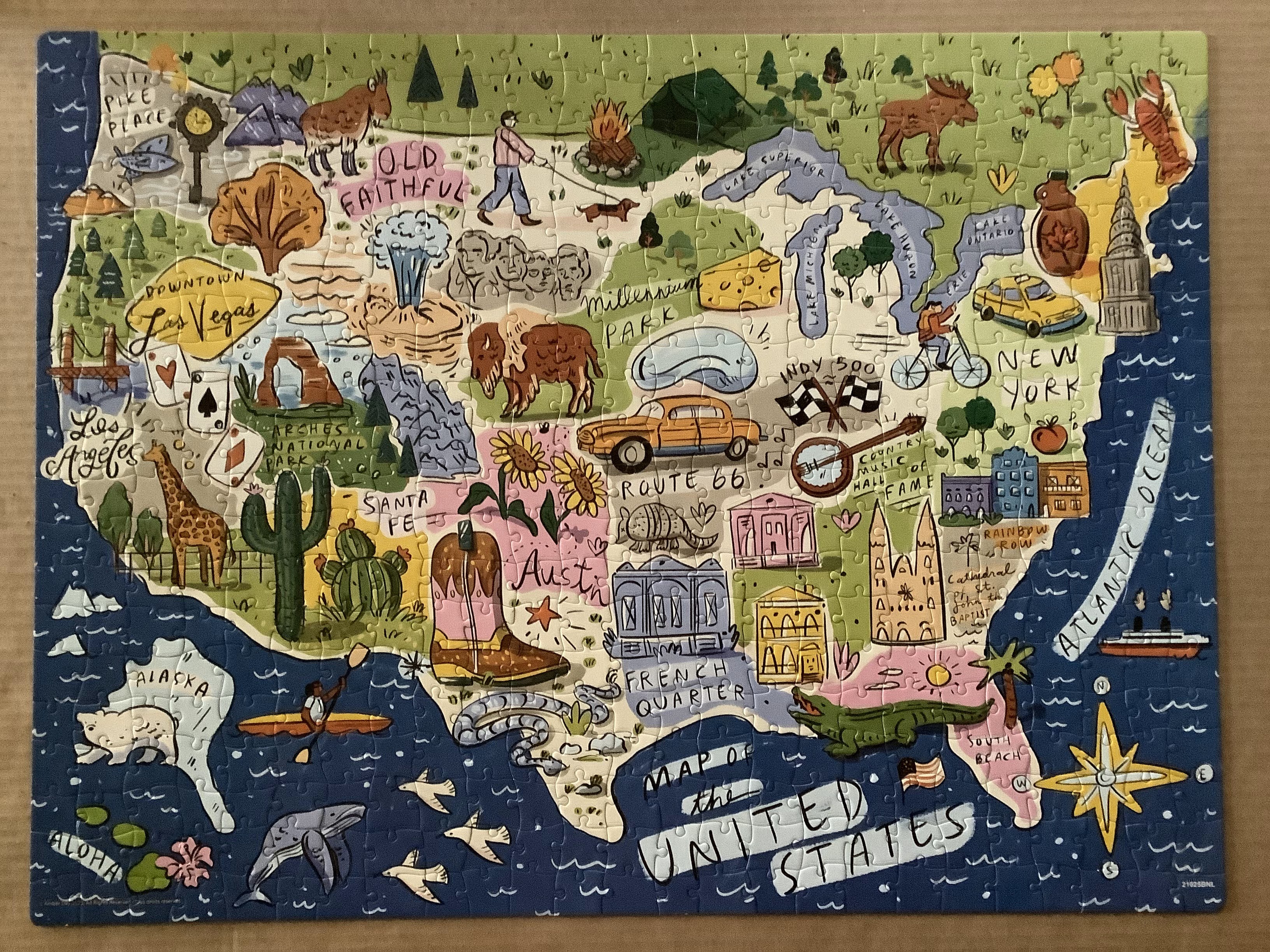 now you can see it, huh? You take your chances with thrift store puzzles. It take’s awhile before I realized the pieces left, which were mostly white, won’t go in that spot, but they’re still fun to do. My next puzzle was an easy one⬇️very easy, and nostalgic, seeing all these places on our travels.