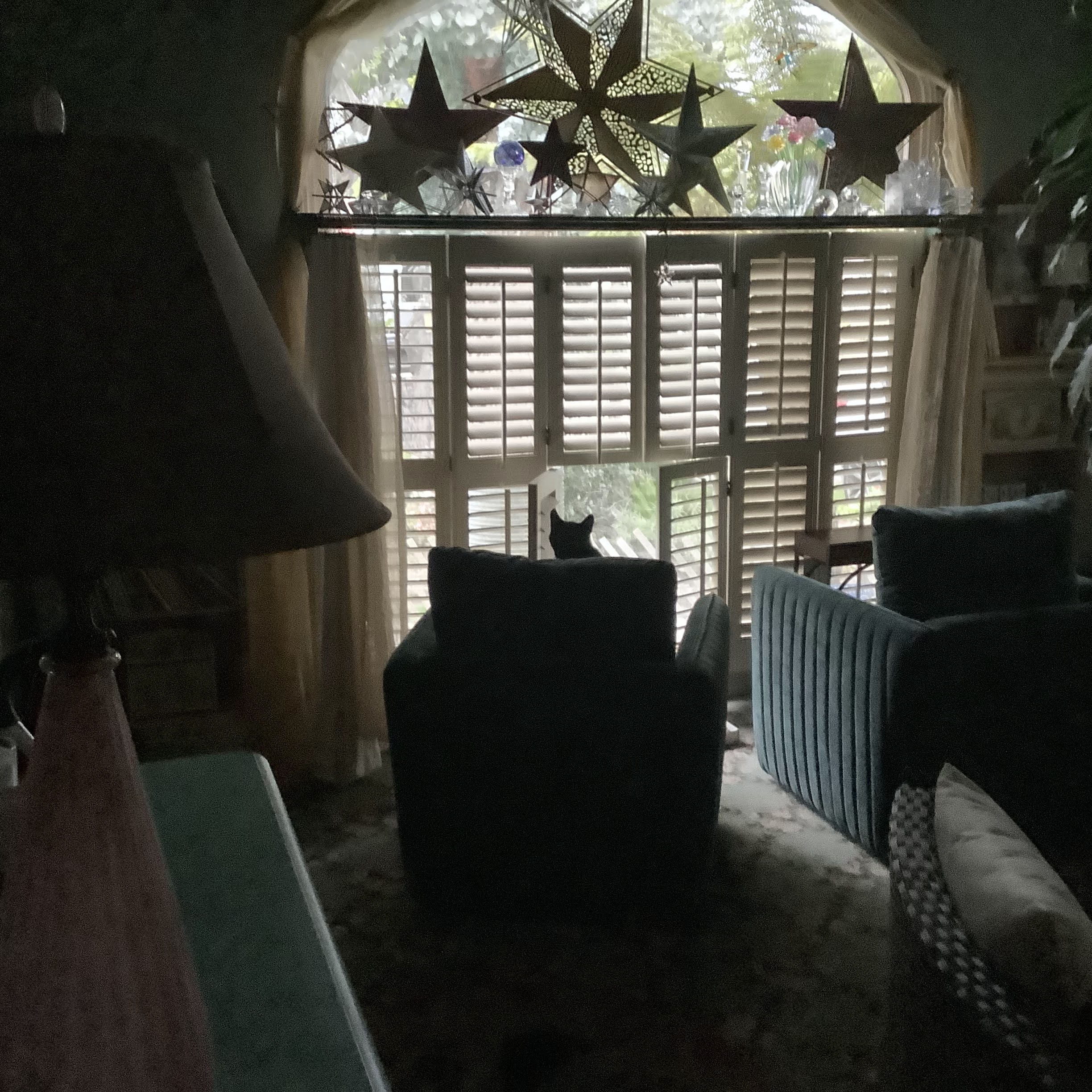 Then I catch him on the chair peeking in at me through the curtains. Hmmm?