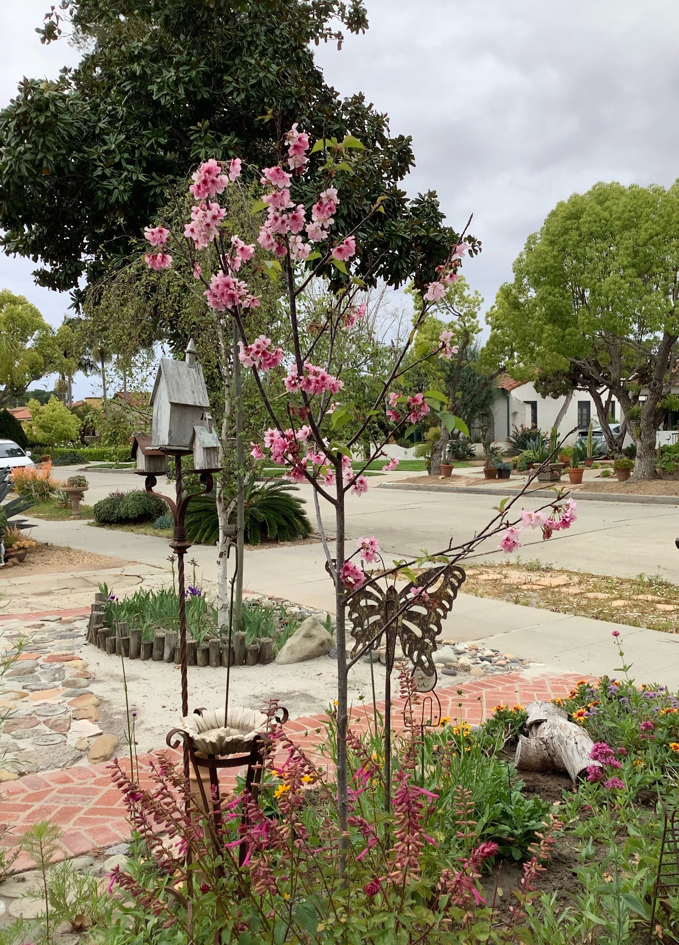 other wildflowers came up with the poppies, check out that dark flowered one, and the little daisies came up again this year in the parkway😀but the sweet peas didn’t☹️